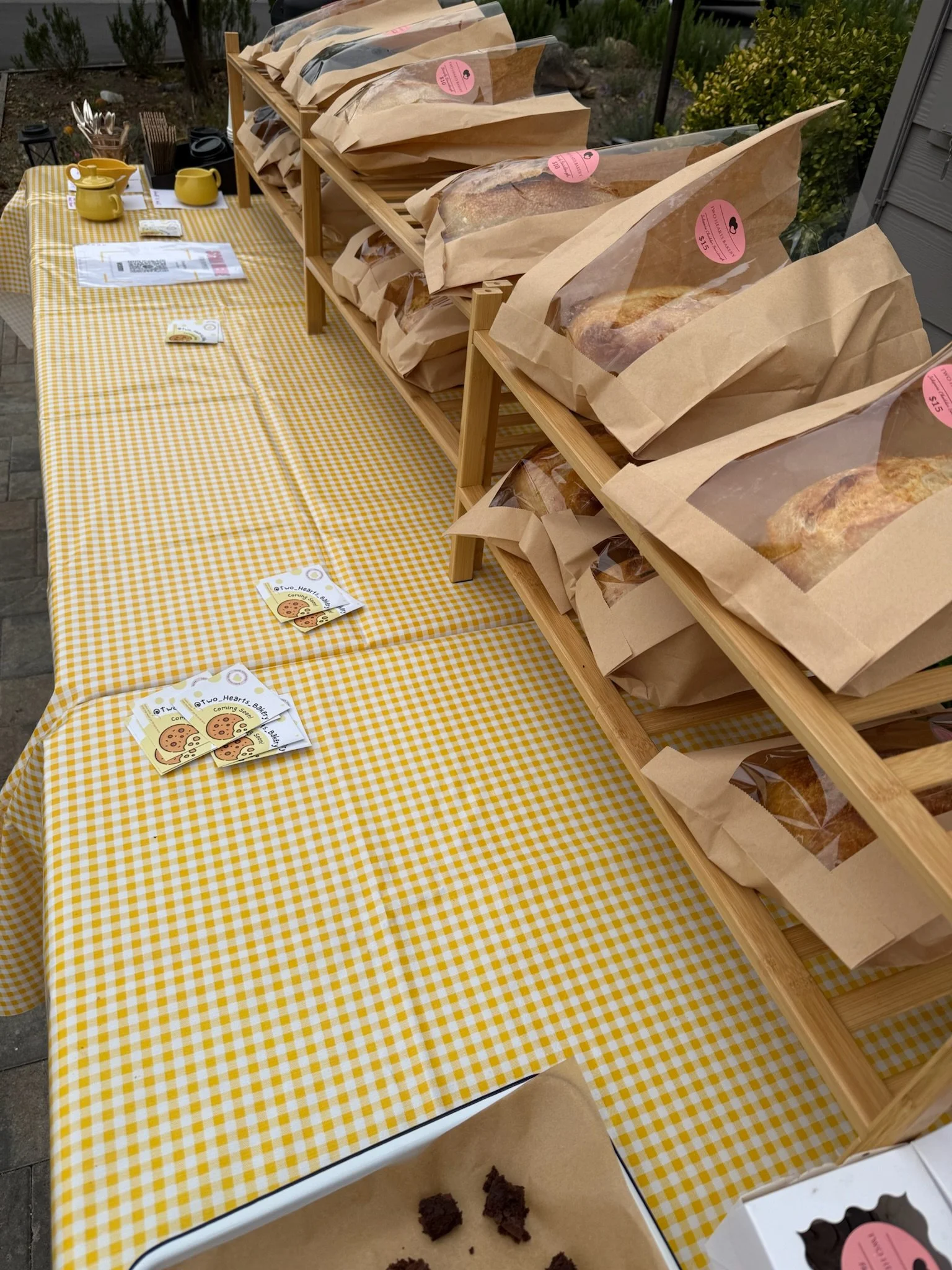Mother daughter duo, Donna and Erica, setting up bake sales for your freshly baked goodies.